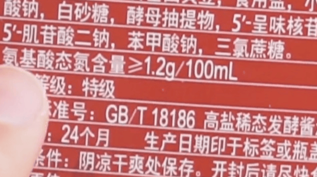 第一个,我们要找到酿造酱油这四个字。酿造酱油是由大豆、小麦为原料制成的,没有任何毒副作用,而且味道更浓香。如果写的是酿制酱油的话,千万不能购买。