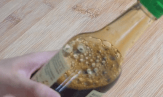 像一般比较劣质的酱油,我们在摇晃的时候只会出现少量的泡沫,而且泡沫一会儿就消失了。最后我们还可以把酱油拿起来。看一看酱油的流速一般流速越慢,说明这个酱油越好。如果清的像水一样的酱油,尽量不要购买。