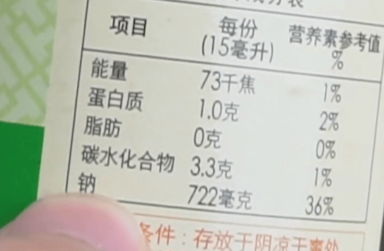 第三个,我们在买的时候可以对比一下它的钠的含量。钠含量越少越好。众所周知,盐吃多了对身体不好,所以我们经常要购买那含量比较低的酱油。而且在买的时候可以选择这种保养生抽。