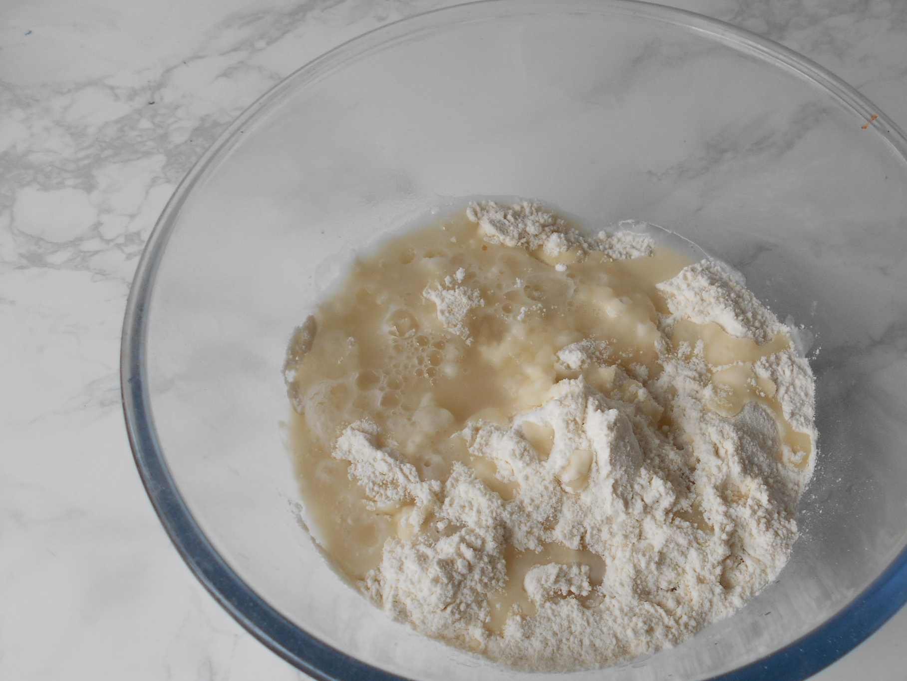 2我们先将面粉中加入沸水,水不要一次加完,留一部分。因为每种面粉的吸水量不同,根据情况而定。