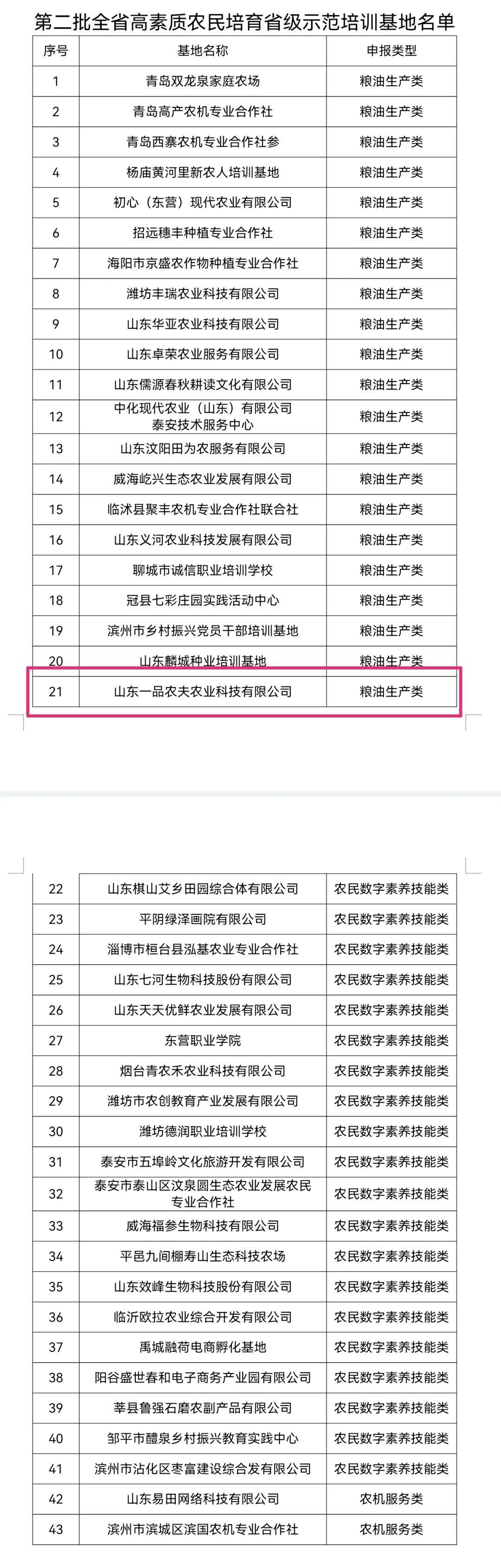 目前,山东一品农夫农业科技有限公司已入选“第二批全省高素质农民培育省级示范培训基地”。