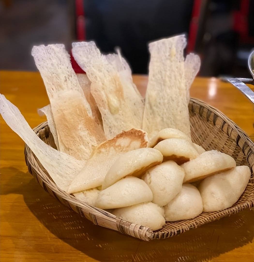 锅边馍 ,一道特色小吃,造型很吸引人 , 表皮焦黄酥脆,中间还是软绵的口味,尾巴薄的地方口味酥脆,吃起来口感软糯带着回甜。