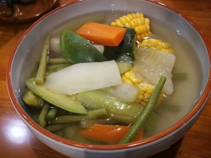 耙耙菜, 不吃辣的朋友的福音,里面就是清爽的素菜煮汤,味道和口味较淡,对于在乐山吃红油和火锅的朋友来说,解油腻,去去油很好。