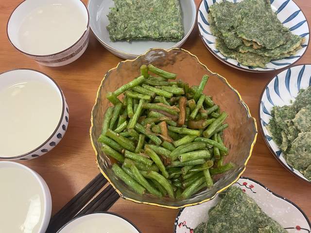 我们河南人都喜欢喝面糊粥,取适量的干面粉,往里面倒入适量的纯净水,搅拌稀释成面粉水,随后煮锅内的水煮开后,淋入面粉水,用勺子搅拌一下,开小火煮15分钟,使面糊汤煮的粘稠一些就可以。早上我还炒了个新鲜的豆角菜,素炒的,比较清淡爽口。早餐看似很简单,却很好吃营养又健康,一家人成本不到5块钱,每人一份煎饼,再喝一碗糊涂粥。这顿早餐饭是不是大家也想吃?看饿了?也可以试着自己做一下,比外面买的经济又营养。