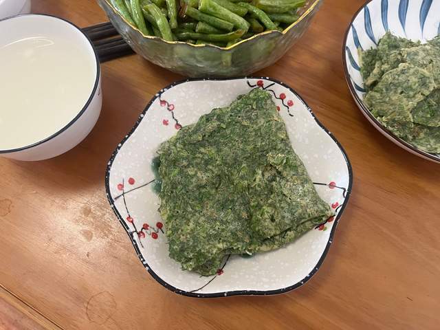 每天清晨起床后都会来到我家的小菜园,拔拔草,看看那些新鲜的蔬菜能吃了,采摘下来就炒炒吃了,整个夏天都不用买菜。 在小菜园割了一把新鲜的茴香菜,回来清洗一下甩干水分,直接切成小碎丁,往里面打入3-4个鸡蛋,再来一丢丢的干面粉,适量盐和十三香搅拌成面糊的状态,用不粘锅烙成薄薄的煎饼,喧软鲜香又好吃。