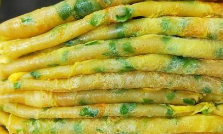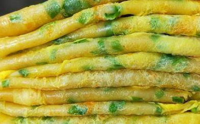 第6部,因为我们制作的这一个早餐饼非常的薄,全程只需要60秒,也就十几分钟就可以烙熟了,这个时候我们就可以把它盛出来了。