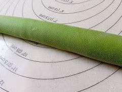 5、我们将面团卷成一个圆柱形,在撒点干粉,双手来回轻握均匀,再放垫子上来回搓匀;