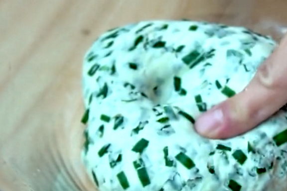 第一步:准备一把韭菜择洗干净,控一下水分切碎,把韭菜放在碗中,加上一点食盐,把水分腌制出来,腌制出来的水份不要倒掉,直接加上适量的面粉,揉成一个面团,醒面10分钟。