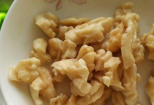 3.\n趁热脱掉核桃外皮,核桃皮有点涩,所以要去掉