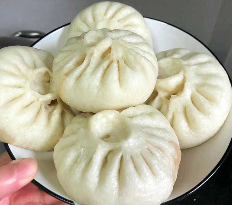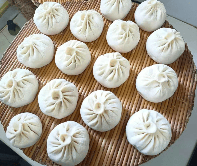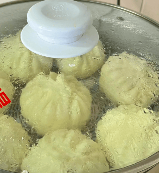 3、包好的包子二次发酵后上锅蒸然后关火焖一下再出锅,这样蒸出来的包子暄软不塌陷,非常好吃。