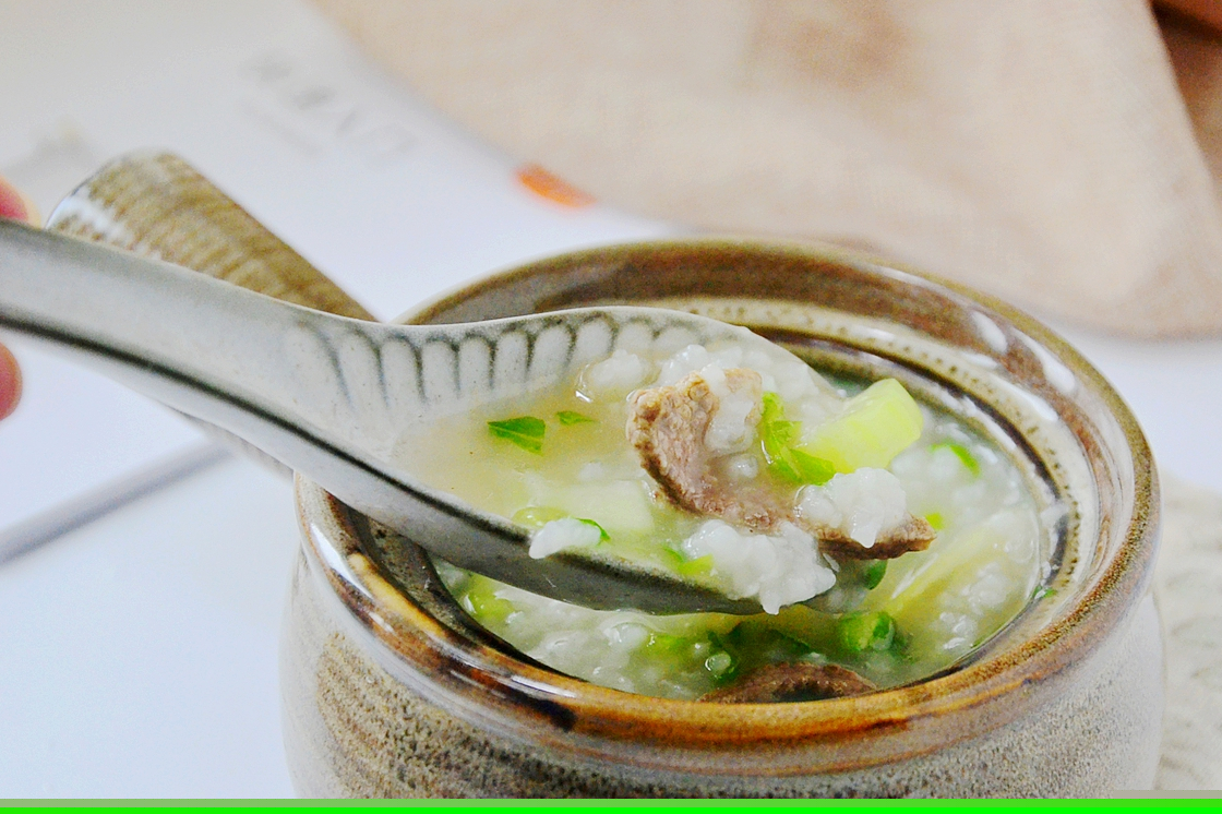 2、将大米和水按照1:10比例放入熬煮,煮到粥品形成了,然后将切成薄片的猪肝放入,蔬菜也一起加入,大约再熬煮10分钟左右,最后放盐和姜丝胡椒粉就成了。如果你早上懒得起来,可以晚上预约熬煮,等第二天只要加入猪肝和青菜,10分钟暖胃营养的粥品就成了。