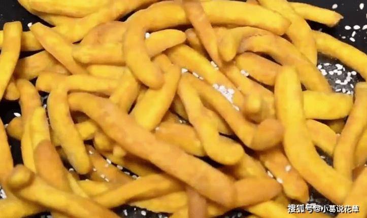 3、将和好的面团取出放在案板上擀成长条,然后用手压扁,用擀面杖擀薄,然后切成长条。不要把它剪得太宽。面团准备好了。松开并放在一边。 4.锅中倒入适量的油,中小火慢慢煎,煎的过程中要时不时搅拌一下,这样受热更均匀。炸至金黄酥脆,检查油,捞出。 5.锅中加入半杯水和半杯糖。用抹刀不断搅拌,直至表面充满气泡,并获得浓稠的糖稠度。关掉暖气。倒入炸卷,加入一把芝麻,快速炒匀,炸卷就做好了。不要油炸南瓜,用它来做卷。南瓜香气浓郁,咬下去脆脆的。就是小时候的味道。这样做出来的卷,咬起来又脆又脆。它们又甜又香。还是小时候的味道。它很好吃。想吃就自己在家做吧!自己准备的食物干净卫生,无任何添加剂,让您吃得放心,吃得开心。