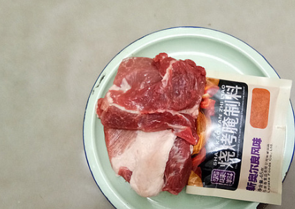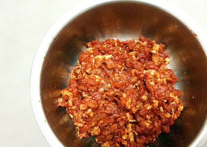 制作方法:大家把上面说的这些材料准备好之后就可以开始做了,首先要把馅料先做一下馅料,就是要用到猪肉和奥尔良烧烤腌制料。