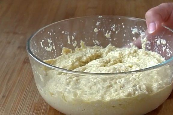 3:把菜椒用清水洗干净,然后在把菜椒籽去掉,把菜椒切成菜椒末放在豆腐泥中,在豆腐泥中放上一点葱花、食盐、胡椒粉、食用油、最后加上适量的面粉搅拌均匀。