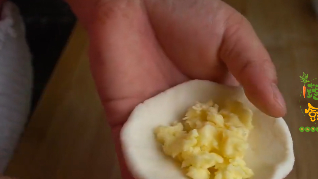 三、不用发面,直接放在面板上搓成长条状,在分成相等的小面剂,取一个面剂,把它团圆,在按扁,整成一个小碗的形状,边缘要薄一些。
