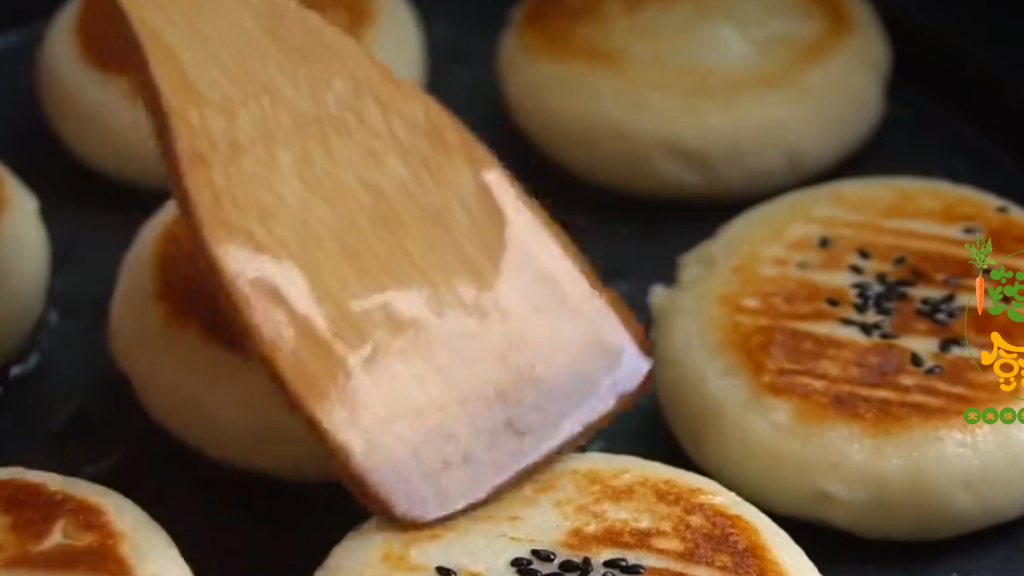 四、电饼铛刷油,油热以后放入饼胚,在饼子表面刷上一层清水,撒上黑芝麻点缀一下,用中火烙三分钟,底部已经金黄了,糯米有点黏,翻面时要小心一点,翻面后再烙三分钟,一直烙至两面金黄,小饼就熟了,简单的山药小饼就做好了,里面加入了酵母,使得小饼非常的松软。