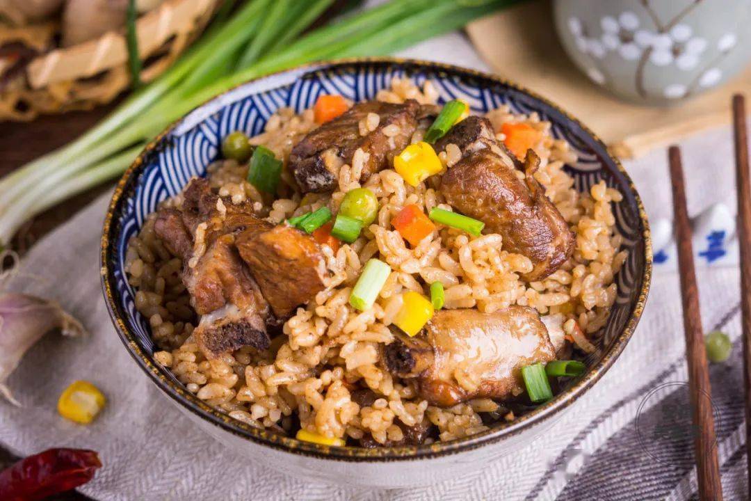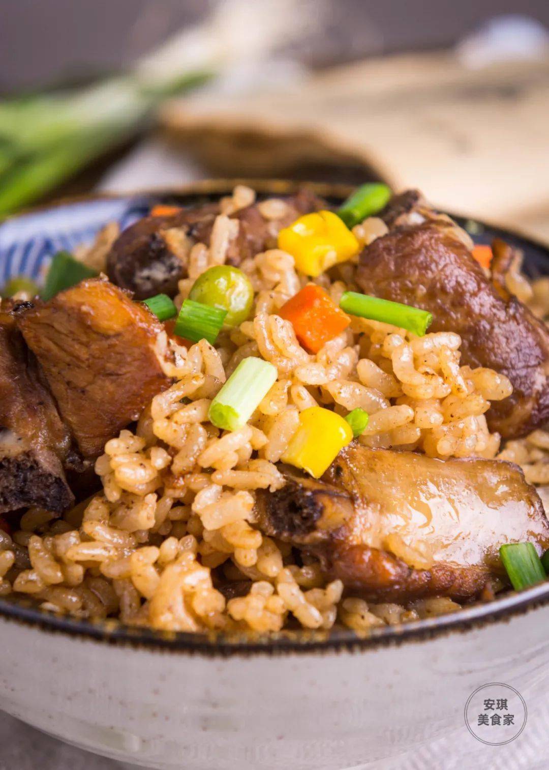 做好的排骨焖饭,排骨煮到软烂,米饭粒粒分明,每一颗都吸收了汤汁,软糯甜香,好吃到尖叫,绝对是焖饭中的王者!