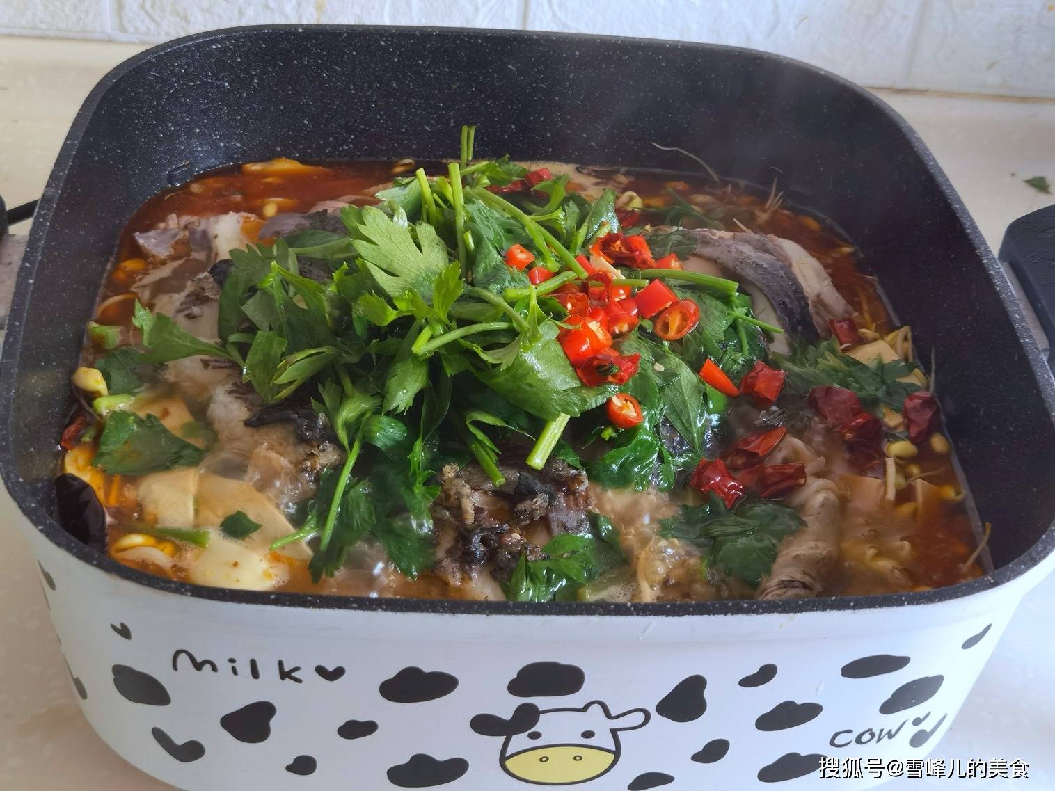 第八步:上面放上香菜和小米辣,泼上热油,直接端上桌即成。