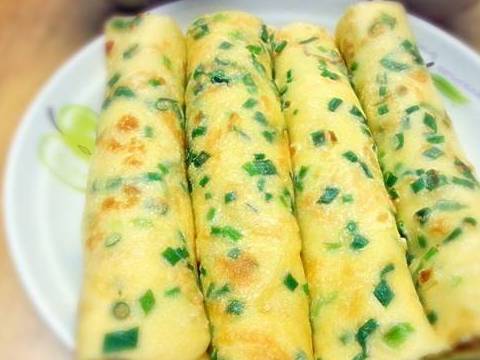 食材:普通面粉200克、鸡蛋3个、食盐适量、小葱3根、清水适量