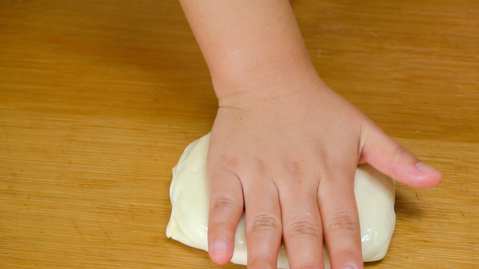 面团醒好之后不要揉直接整理成长条,因为千层饼需要一定厚度才能显示出层多,这里我们下四个剂子。