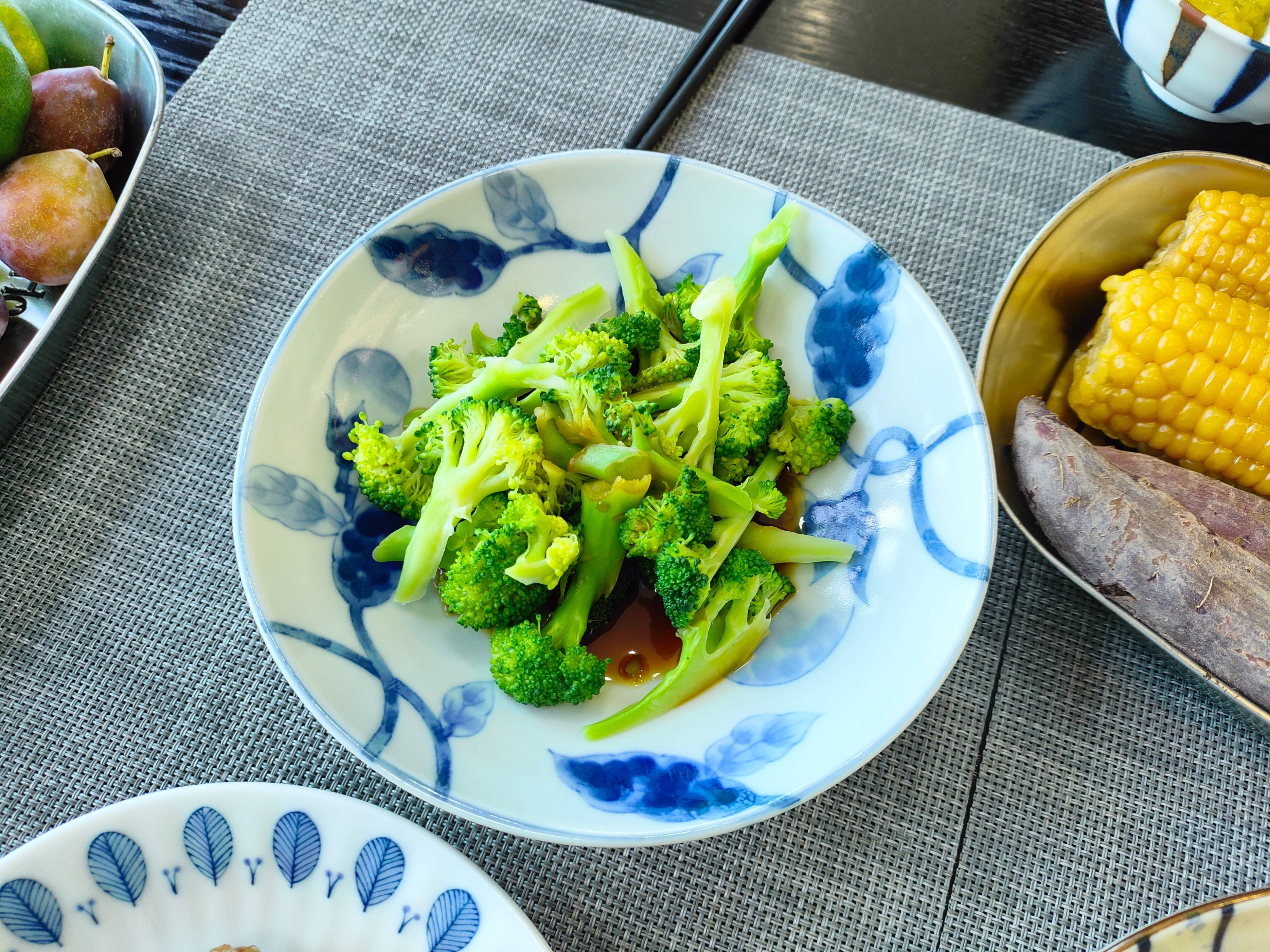 再烫点西兰花,滴几滴酱油,清清爽爽,很舒服。