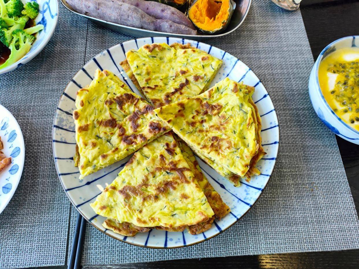 主食是南瓜丝鸡蛋饼,金灿灿的,我家特别喜欢。