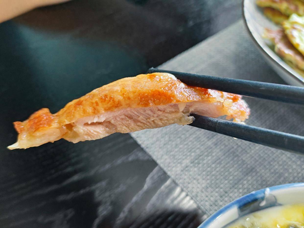 除了鸡蛋,早餐还烤了鸡腿扒,不用一滴油,扔进空气炸锅15分钟,好吃又省事儿!