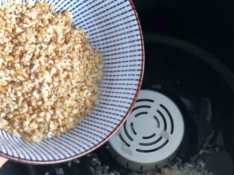 3.燕麦粒洗净也倒入锅中