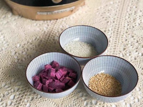 大米200克、紫薯100克、钢切燕麦100克、水适量