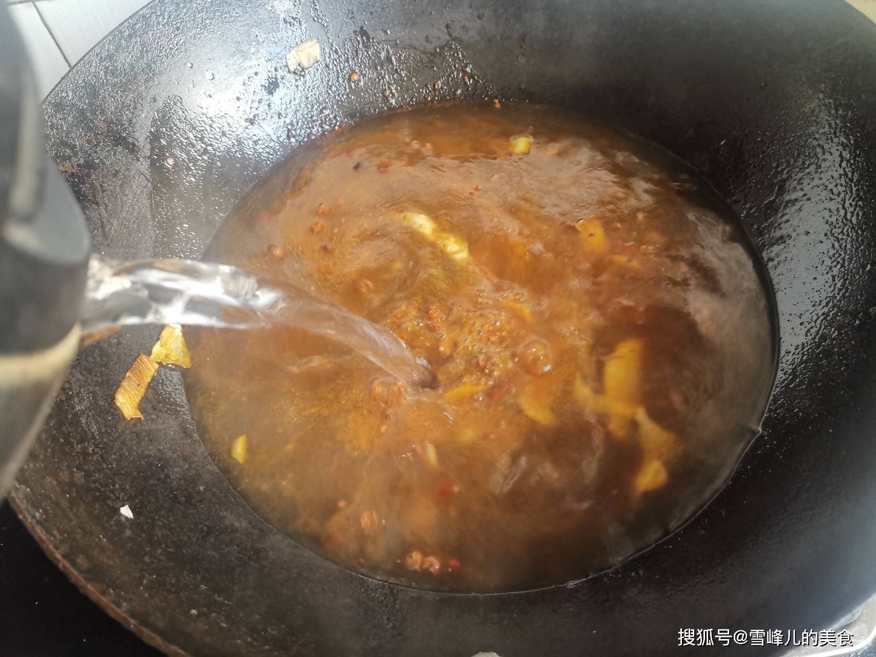 第五步:倒入适量的开水,大火烧开,加入少许盐调味,如果不喜欢太咸则可以不用放盐,因为底料中有一定的盐分。
