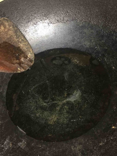 8.锅内放入花生油烧热。