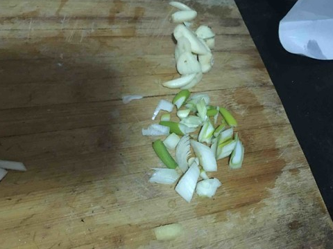 4.葱花蒜切好备用。