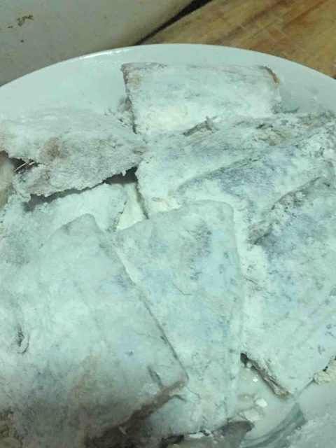 7.带鱼裹上一层面粉。
