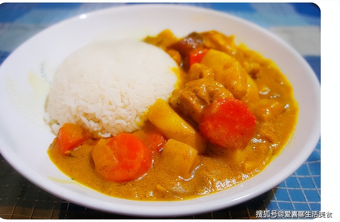 3,炒至土豆差不多熟后,将鸡肉放入,继续翻炒,最后加水没过食材,土豆变得酥软的时候,开大火减少一点水量,接着加入咖喱粉,小火煮融化,就可以盛入装有米饭的盘中开吃了!