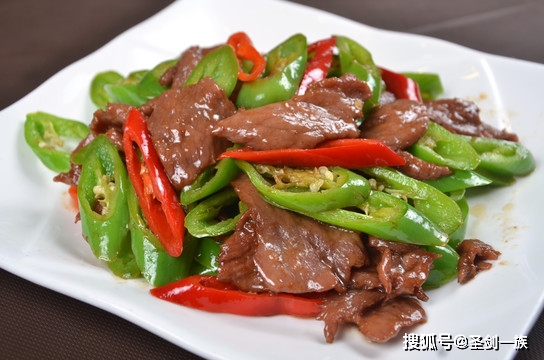 3.起锅烧油,牛柳 滑油 倒出。锅中加入适量橄榄油,烧热后加入蒜末姜片爆香,放入辣椒段煸炒至断生,加入牛柳煸炒至变色,加入适量盐、鸡精调味即可。