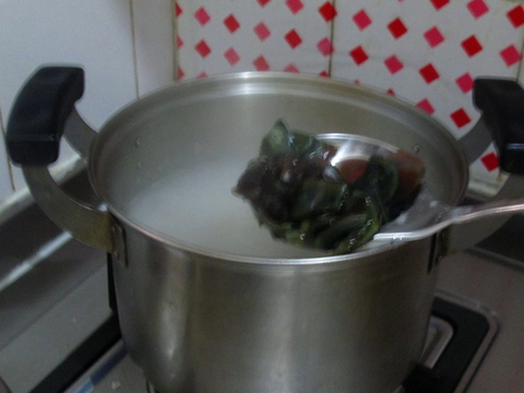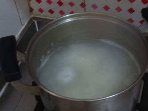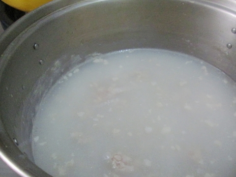 5锅中注入水,烧开下入大米,煮至大米开花。