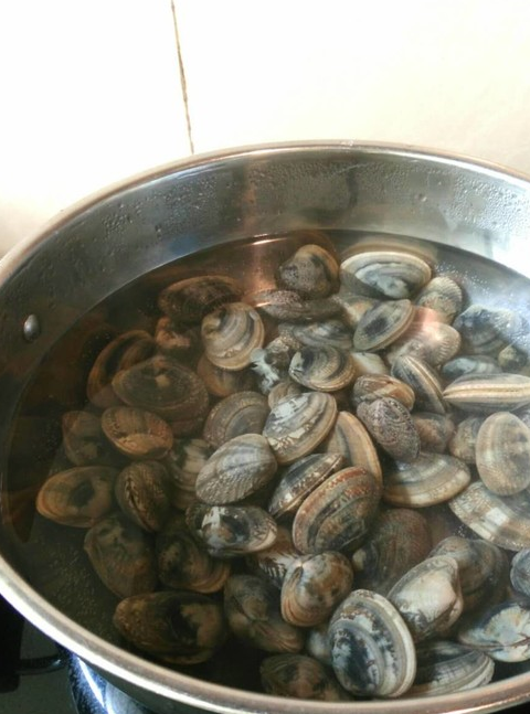 4.烧开水,放入花甲焯至壳全部打开