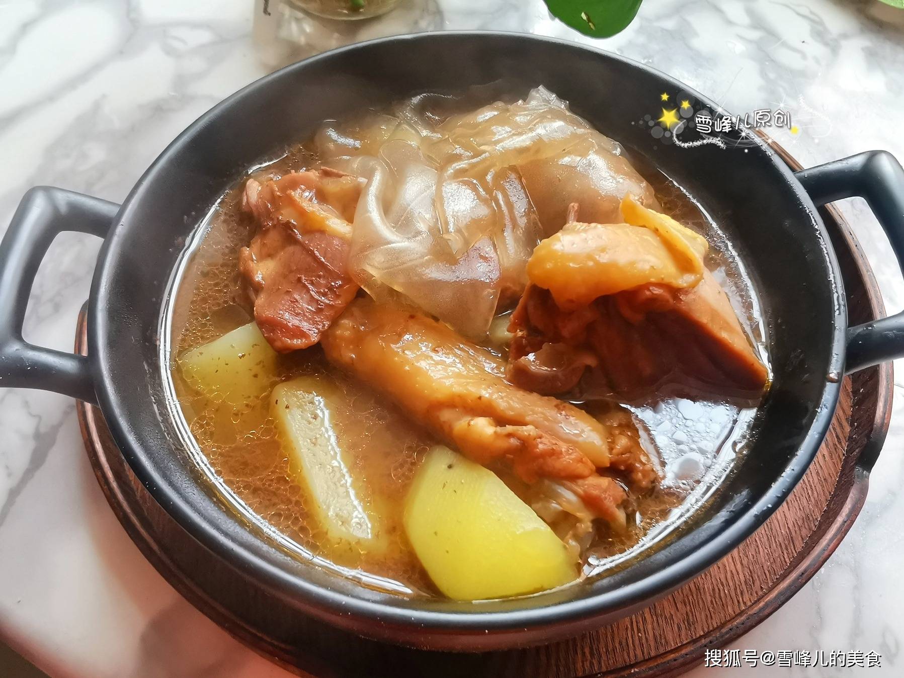 2,我们吃鸡的时候,最好选择家养的土鸡,这样的鸡健康营养,大家都懂得。在炖鸡的时候,红薯粉皮最好浸泡一下,再放入锅里,这样不但干净卫生,而且用时短。