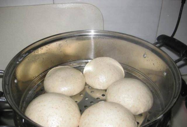 蒸馒头的时候,要用冷水蒸。用热水蒸时,蒸汽直接将面团烧焦,酵母被烫死。蒸馒头的时候尽量不要打开锅盖。冷空气逸出,蒸馏水流入馒头后,很容易变成死面团。