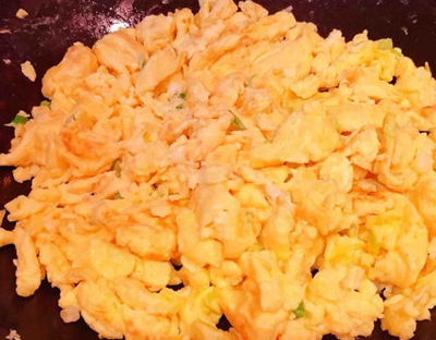 锅中倒油加热,炒鸡蛋。