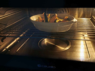 鸡脯肉提前解冻,南瓜洗净切块,放入烤箱200度烘烤20分钟左右。