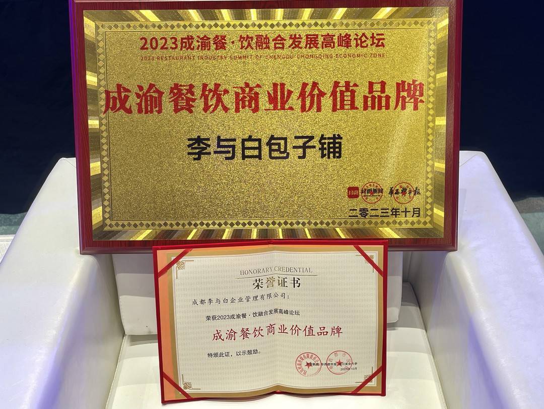 10月27日,来自成都的李与白包子铺,在由封面新闻、华西都市报和第十五届中国(重庆)火锅美食文化节组委会联合主办的“向心合力 2023成渝餐饮融合发展高峰论坛”上,荣获“成渝餐饮商业价值品牌”大奖。