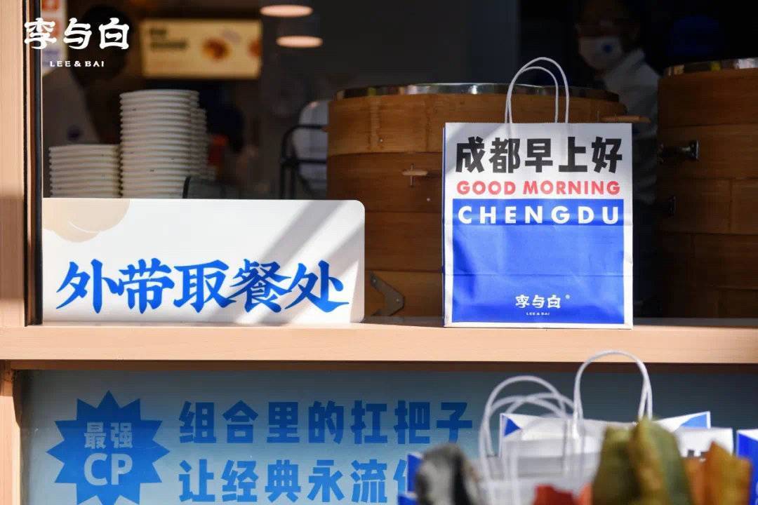 三是升级视觉系统,提供用餐的好心情。一款产品的推出,一次交易的达成,往往需要品牌赋予消费者更多价值,除了实用价值,情绪价值也十分重要。李与白门店装修以白色、浅木色为主,搭配鲜亮的宝蓝色,同时优化了照明系统、餐厅动线,让人更觉干净、敞亮、温暖、时尚。文艺范儿十足的李与白还在产品包装上花起心思,针对不同城市定制“城市早上好”系列手提袋,豆浆杯上的“不想勇敢的时候就停下来”,句句都在为生活的奔波者来一场心灵“马萨基”。