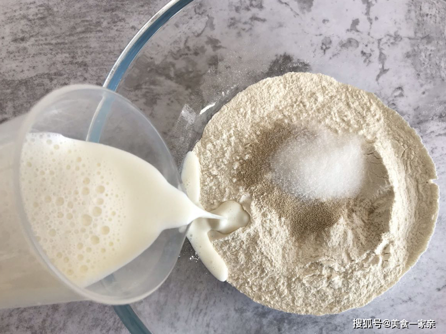 1.首先将200克面粉称重后放入大碗,加入2克酵母粉