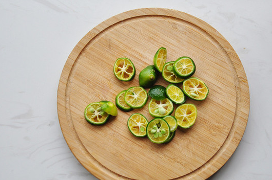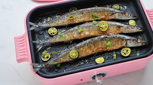 秋刀鱼3条、小青桔适量、有机酱油适量、姜适量、料酒适量、葱适量、食盐适量、有机橄榄油适量