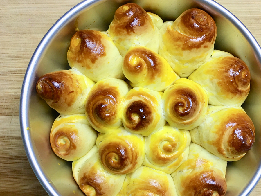 哈喽大家好!我是熙阳美食博主熙阳。如果有朋友问我喜欢制作面包还是蛋糕?我会毫不犹豫地选择后者:喜欢制作蛋糕。那原因是为什么呢?首先,因为我们南方人从小接触面食太少,对制作包子、馒头以及面包这些面食不是很在行,其次,我最头痛的就是面团的发酵,因气候和室内温度的关系,一直掌握不好发酵的时间点,要么是没发到位,要么就是发过了,所以有二次制作面包都己失败告终。而制作蛋糕就没有发酵这一步骤,所以我还是喜欢制作蛋糕多一些。但今天制作的这款面包卷,我觉的还是比较成功的。