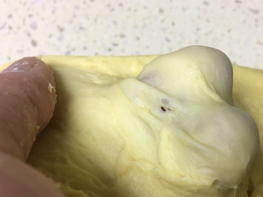 2、合面是一道关键步骤,它是制出拉丝面包的第二个重要点。这一步千万不能偷懒哟!