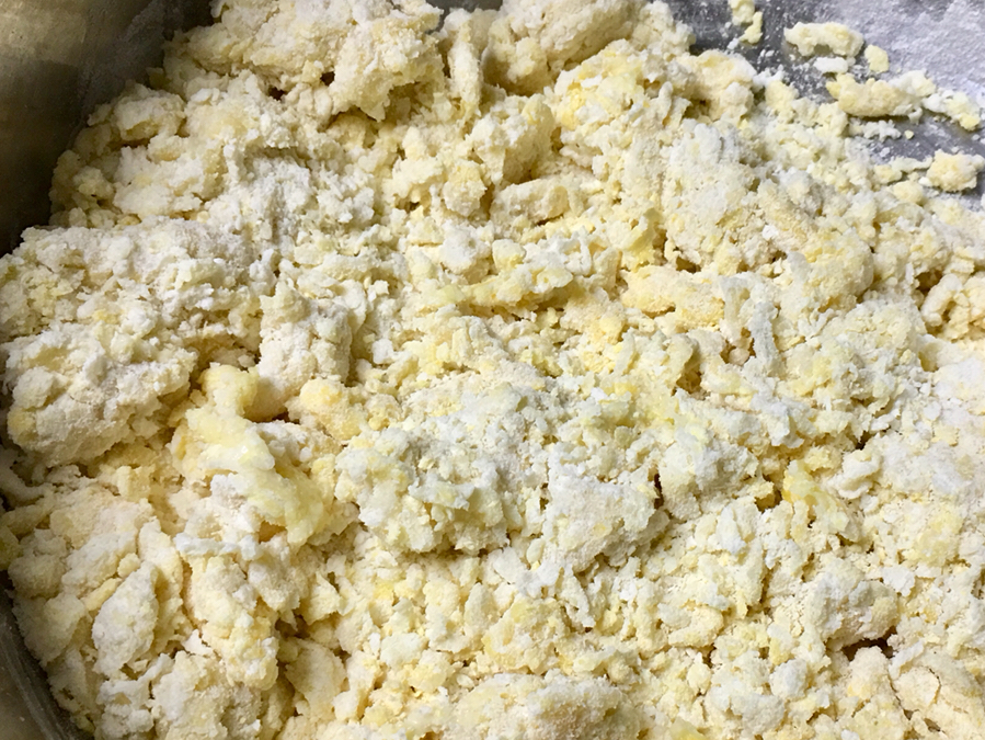 步骤4、搅拌至成絮状时,就用手来揉了。这里注意的是:因各种牌子的面粉吸水性各有不同,所以可以适当加入一些牛奶在里面。但是不能一次加够,要留有余地。