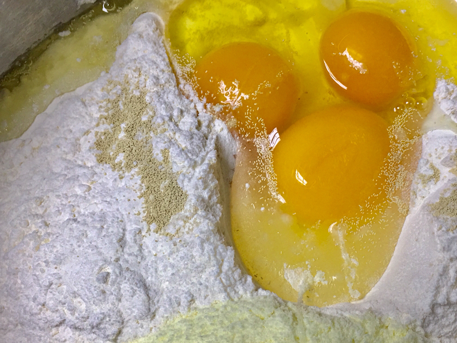 现在市面上卖的和自己在家制作的面包一般都是使用高筋面粉来制作,(在这里跟朋友们简单的科普一下,我们所说的高筋面粉、中筋面粉和低筋面粉是以面粉中蛋白质的含量来划分的)。因为高筋面粉含蛋白质很高,所以蛋白质在经过双手搓揉后(和面),或是面包机的搅拌过程中,变得很劲道,制作出成品后具有很好的韧性,并且越嚼越香,是制作面包、面条最佳的面粉。