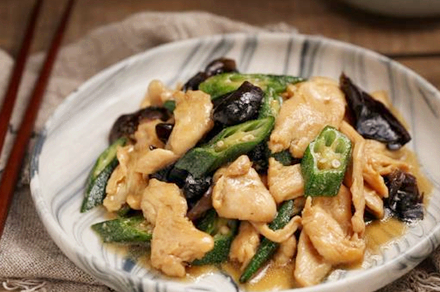 看着如此美食,色泽鲜亮,清香扑鼻,是否顿时食欲大开?这还没完,吃时仍要注意细节,方能让你吃的更加爽快。应要先夹取一块木耳,细细体会一下木耳的爽滑之感,以及其干脆的口感,味道适中,口里也都是木耳的清香。再夹取一块秋葵放入口中品尝,没有了苦涩的感觉,有的只是干爽以及酥脆,咬下去,里面便溢出了许多的汁,这也是它的一大特点。你再夹起鸡肉片放入嘴里,首先感受到的就是爽滑,再慢慢的咀嚼,也毫无炒的过就而觉得老,相反还很鲜嫩。